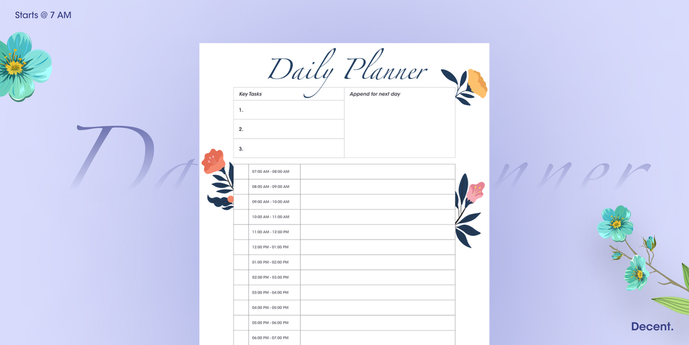 Improve your productivity by using the daily planner to plan your day to day activities. Print the planner of your choice and start planning.